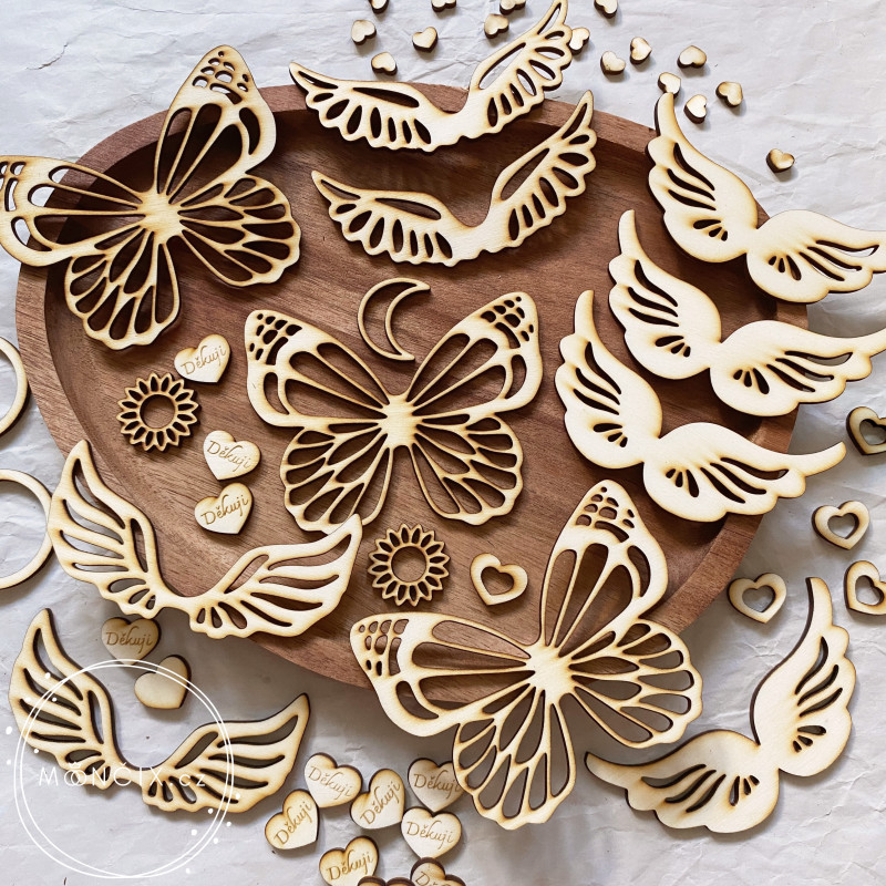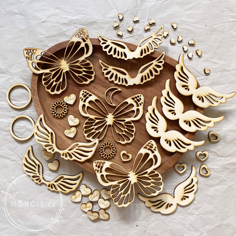 Cena uvedena za set 11 kusů křidélek + drobnosti k dekorování.