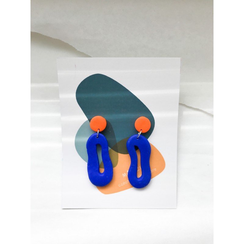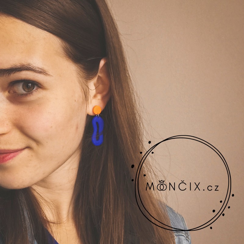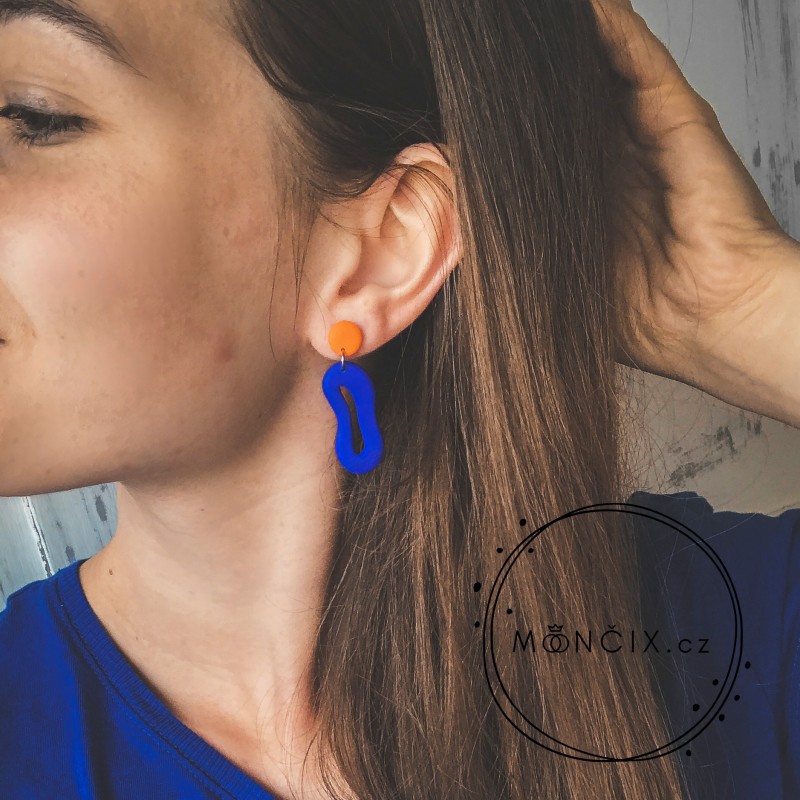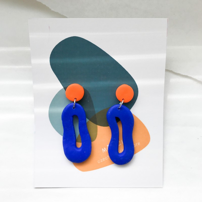Náušnice z polymeru v abstraktních tvarech a zářivých barvách.