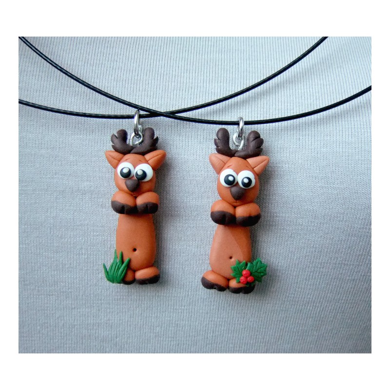 Roztomilý jelen z fimo hmoty jako náhrdelník.Skladem již jen ten s travičkou. :-)