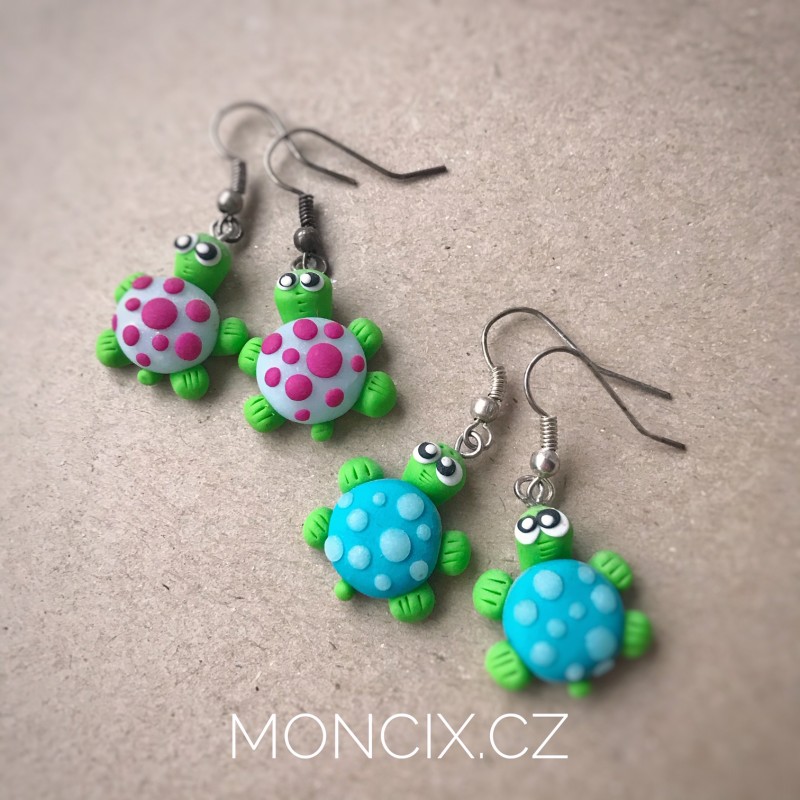 Originální náušnice v podobě fimo želviček. Visací provedení.