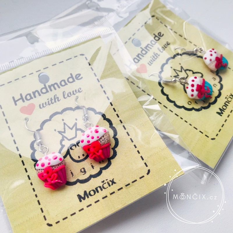 Sladké náušnice, muffiny s polevou, posypem a mašličkou.