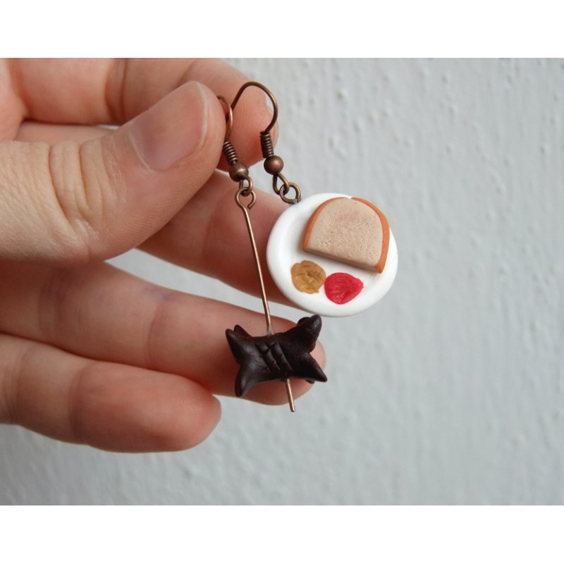 Buřt s chlebem a talířkem z fimo hmoty.