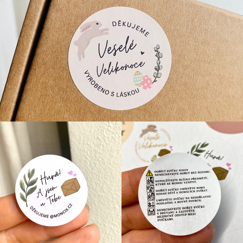 Personalizované samolepky s vaší fotografií – ideální na balíčky, produkty nebo jako stylový branding. Vyrobíme z vaší grafiky na přání kulaté samolepky o průměru 4 cm!