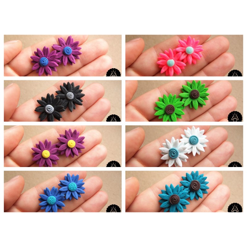 Náušnice ručně modelované z fimo hmoty v podobě květin.