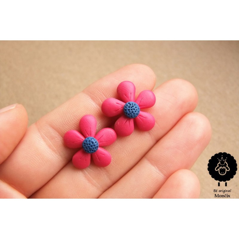 Náušnice ručně modelované z fimo hmoty v podobě květin.