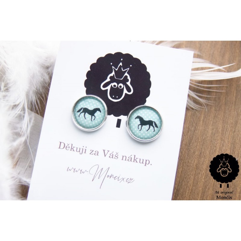 Koníkové náušnice, pecky o velikosti 12mm. Na přání vyhotovíme i visací provedení.