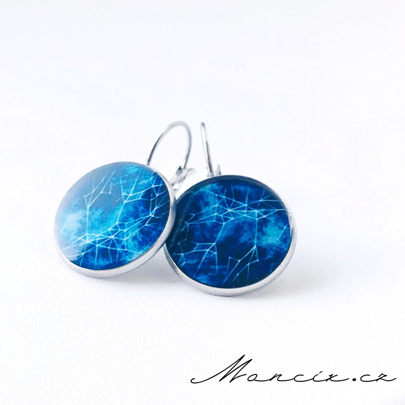 Elegantní náušnice s ocelovými háčky. Vesmírný motiv souhvězdí.