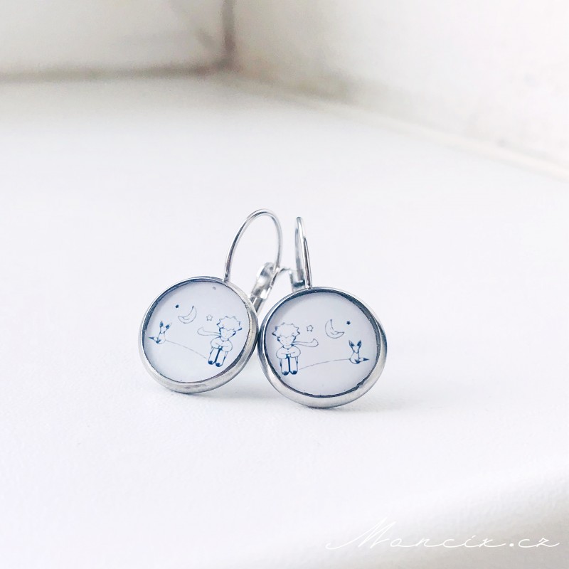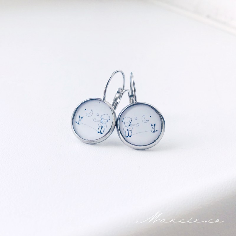 Náušnice z pryskyřice, chirurgická ocel. Motiv malého chlapce s liškou.