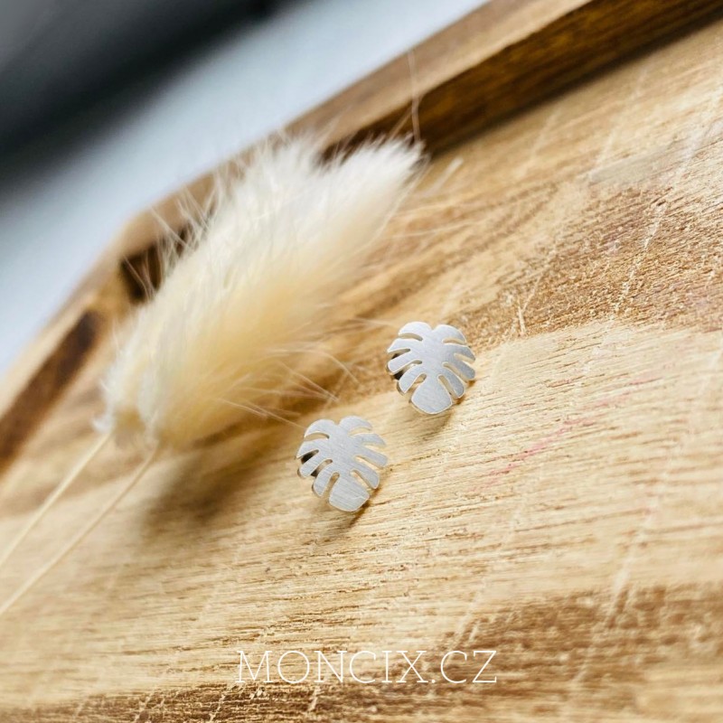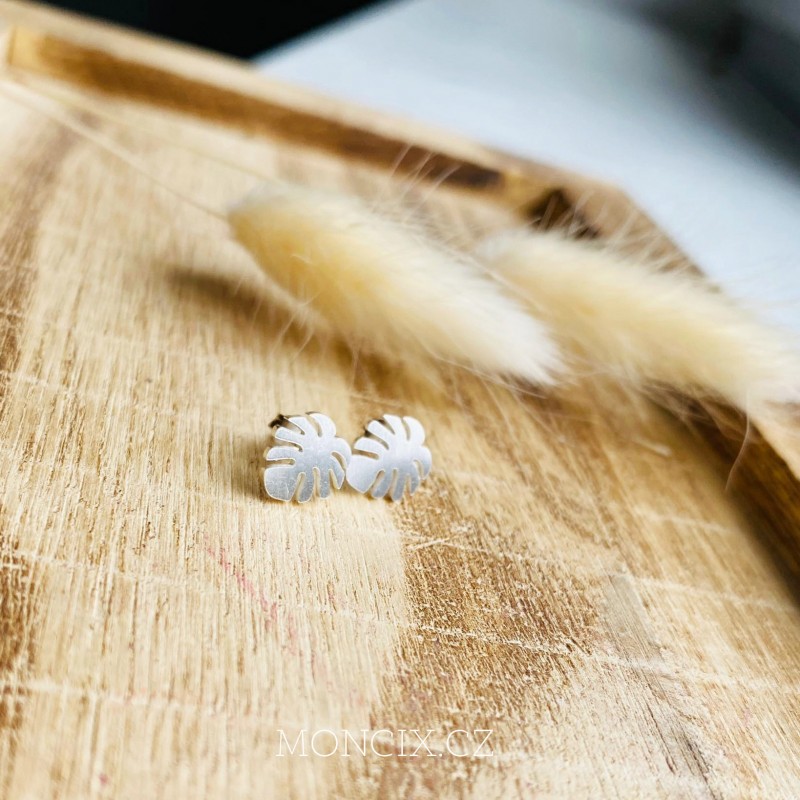 Jemné decentní náušnice z chirurgické oceli.Rostlinný motiv monstery.