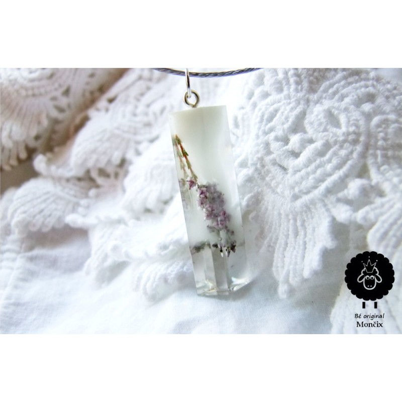 Krásný přívěsek s kousky lučního kvítí, zalit v křišťálové pryskyřici.
