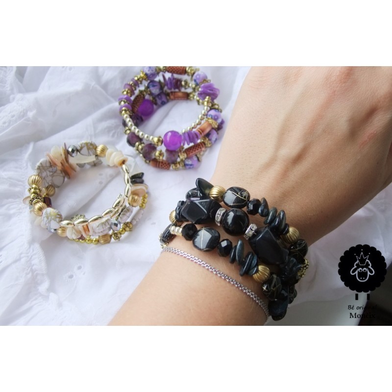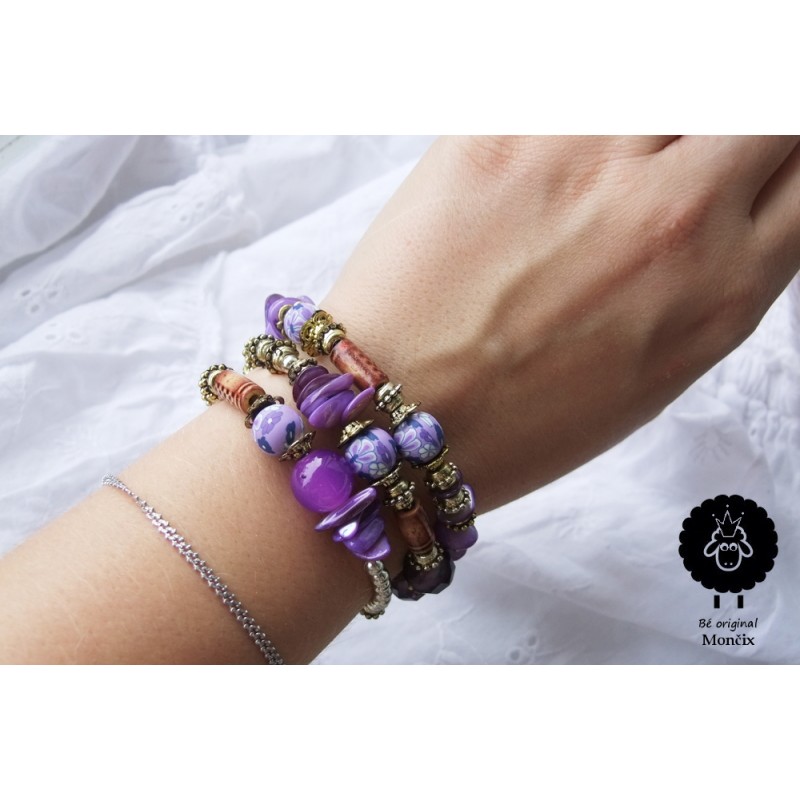 Náramek z korálků a fimo hmoty. Víceřadý.