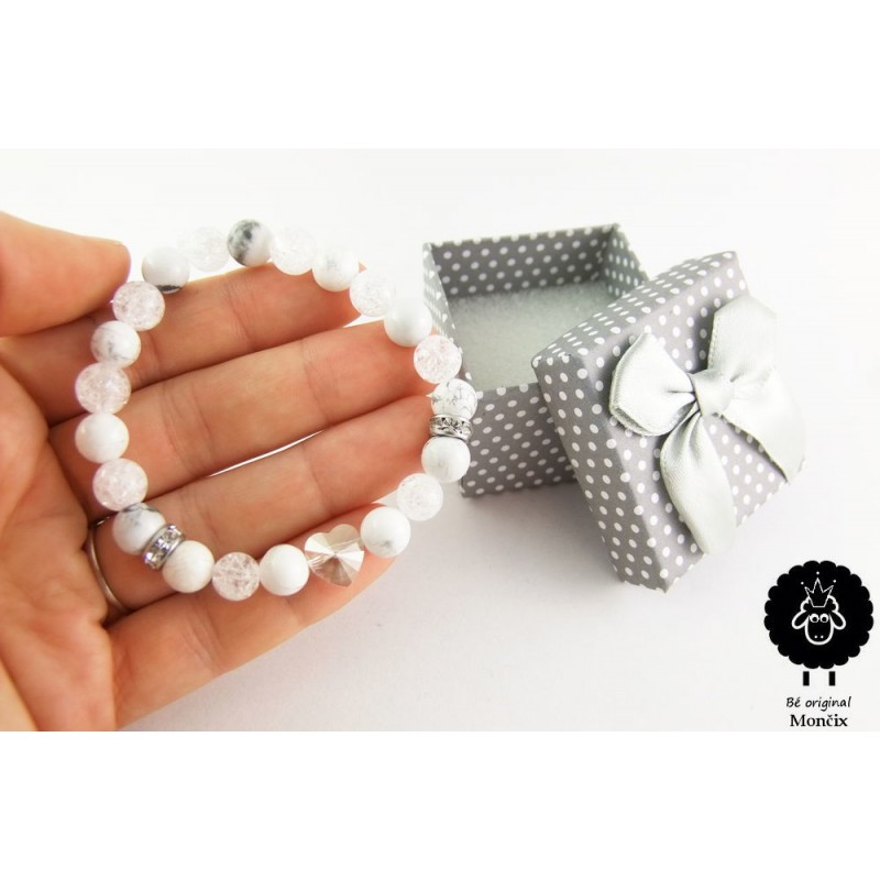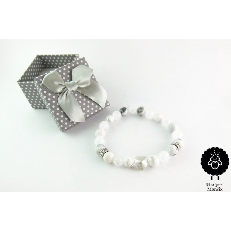 Energetický léčivý náramek navléknutý ze 100% minerálů, doplněno o kvalitní nerezové ocelové komponenty a Swarovski srdíčko.