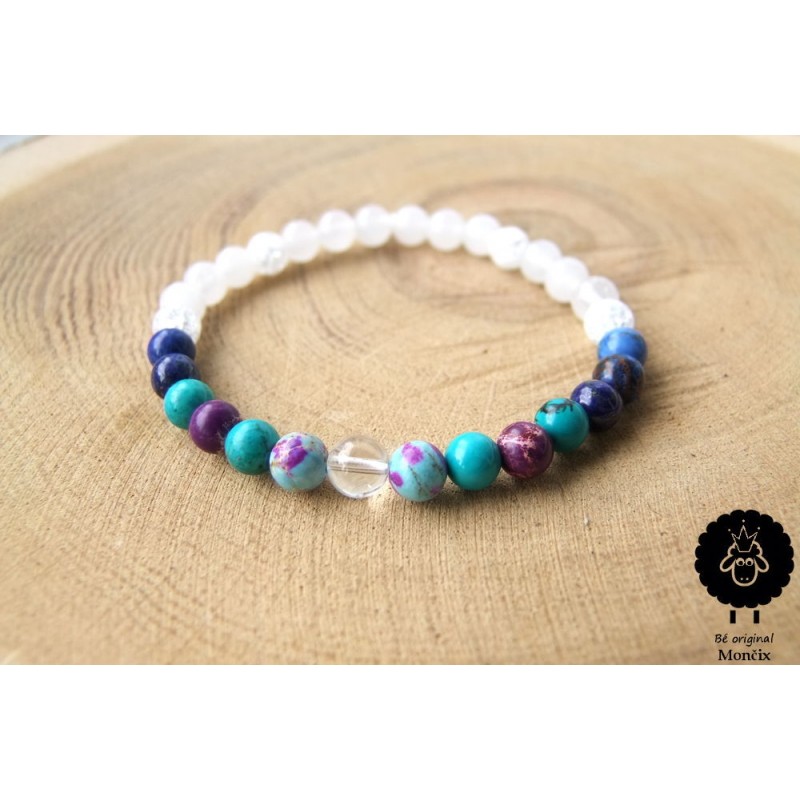 Energetický léčivý náramek navléknutý ze 100% minerálů - sinkiangský tyrkys, sněžný jadeit, křišťál, přírodní variscit, lapis lazuli.