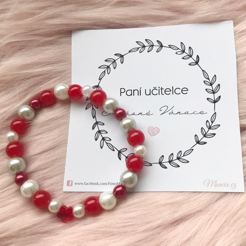 Červený náramek se swarovski květinkou pro paní učitelky.