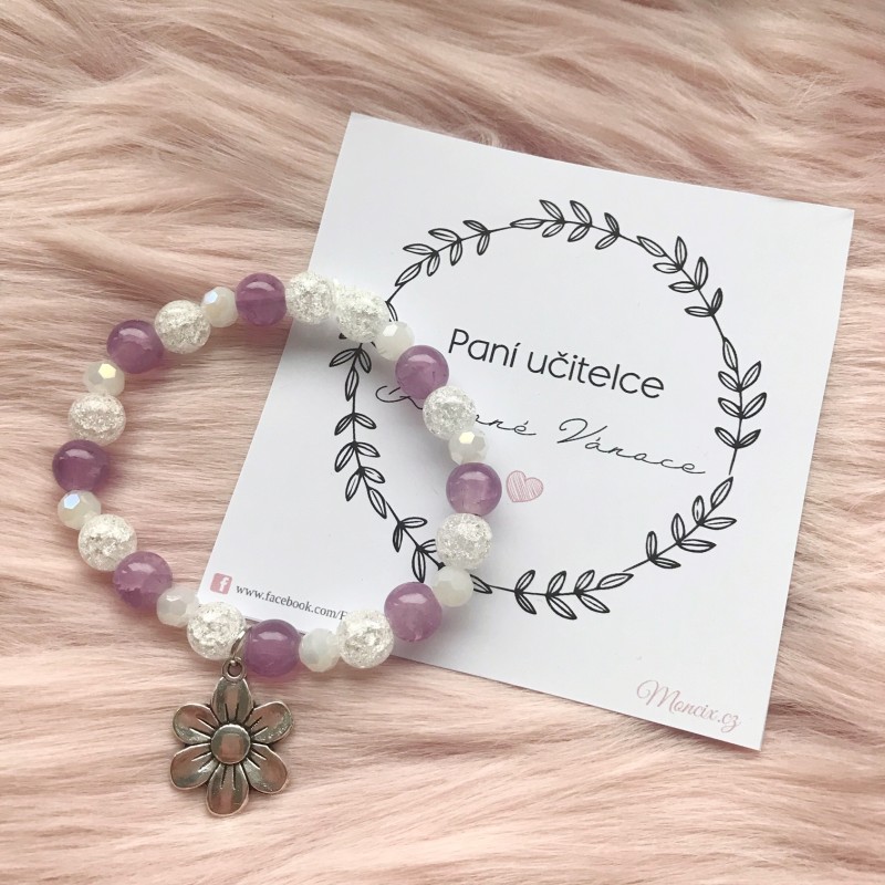 Fialový elegantní náramek s květinou pro paní učitelky.