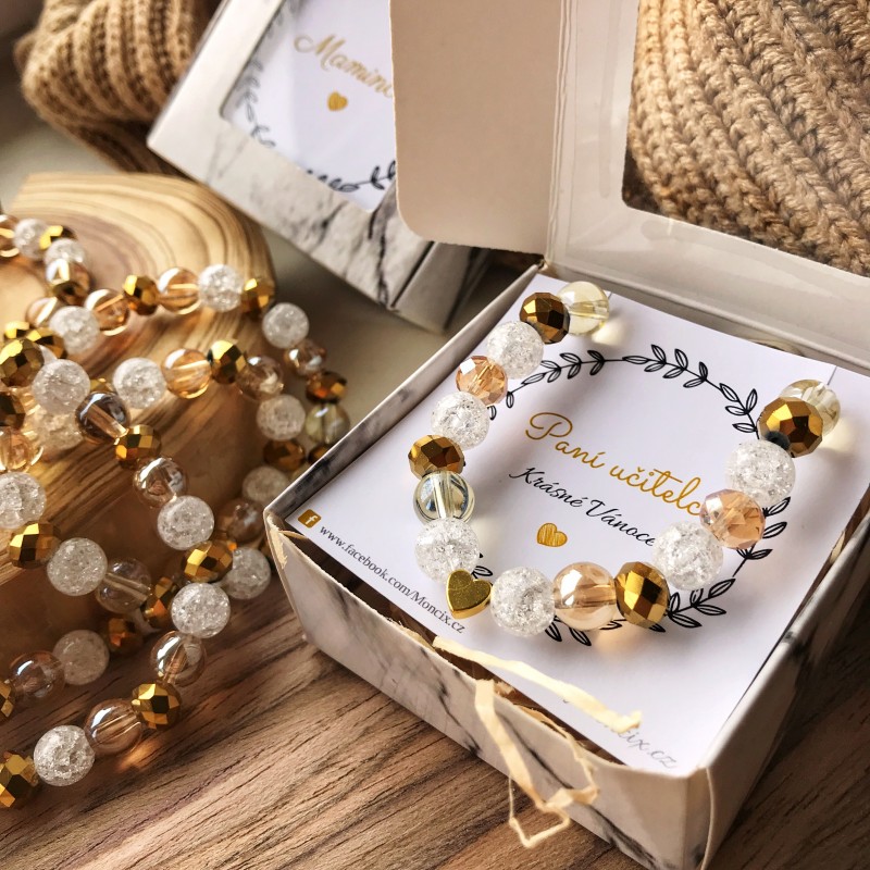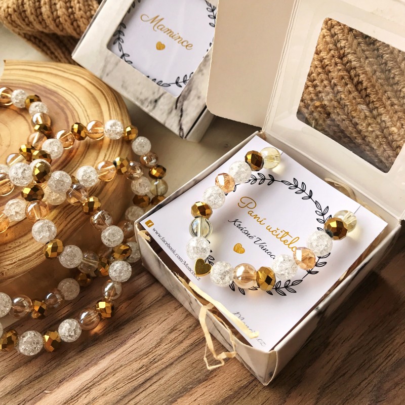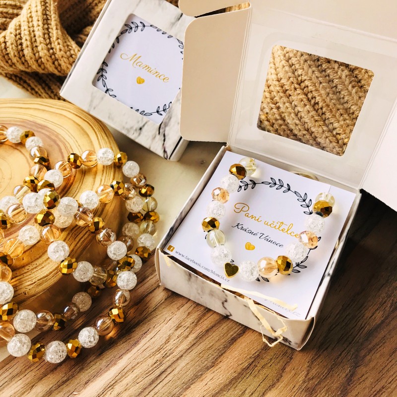 Náramek Vám rádi zabalíme do elegantní mramorové dárkové krabičky s dekorační slámou, pro ještě luxusnější vzhled. Vyobrazenou krabičku je možné k náramku přiobjednat.