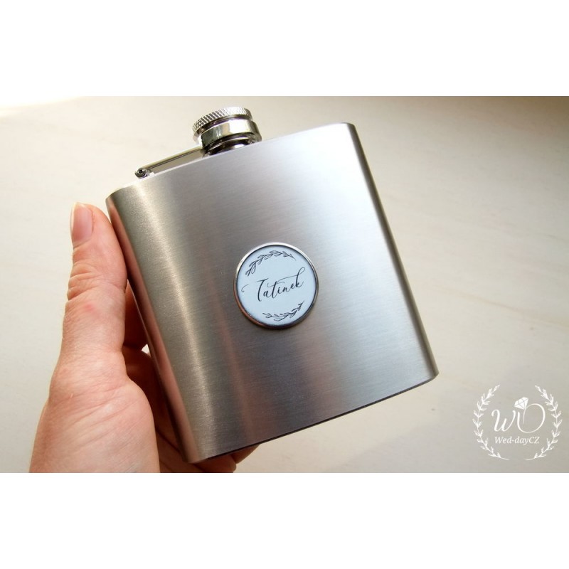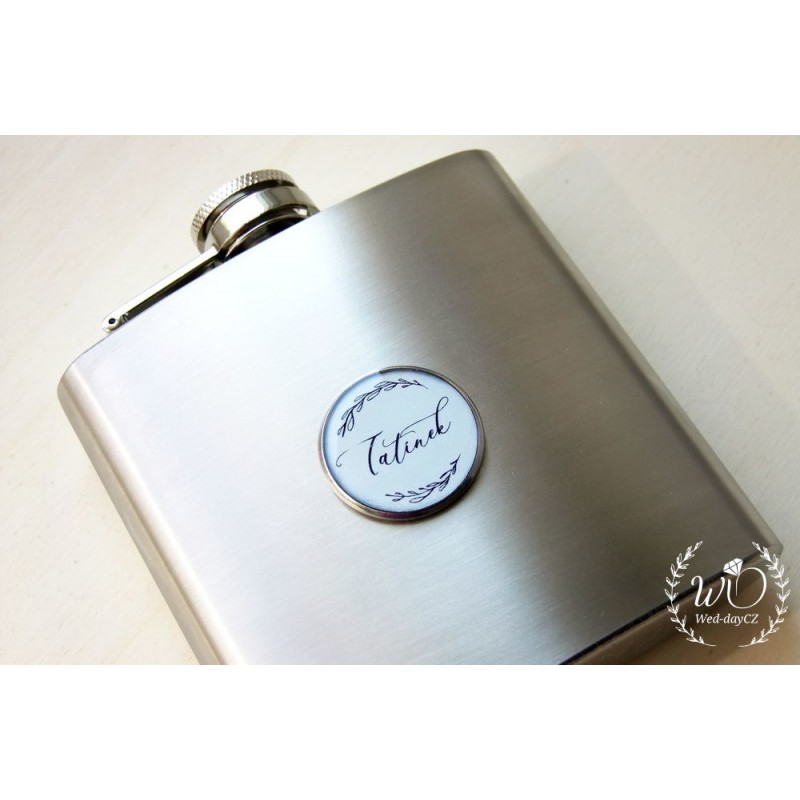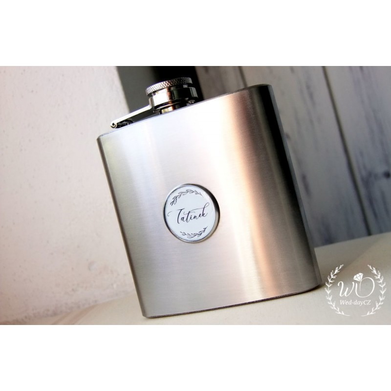 Doporučujeme k placatce zakoupit dřevěnou dárkovou krabičku s vypáleným vlastním věnováním. Placatka tak získá ještě luxusnější vzhled, v kombinaci s dřevem a slámou.
