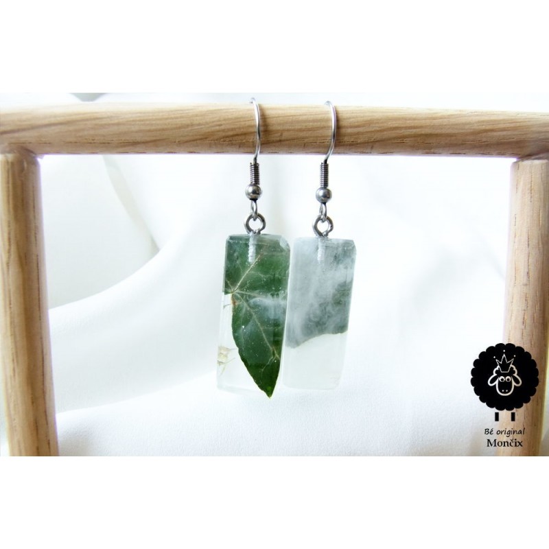 Krásné jemné náušnice s lístky břečťanu, v bílém oparu rána.