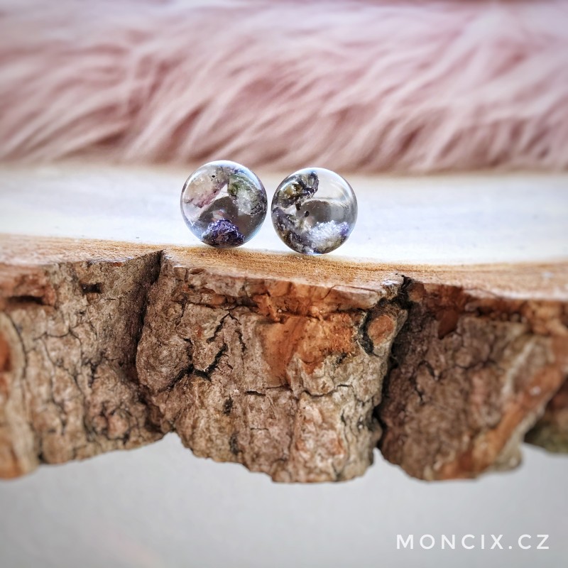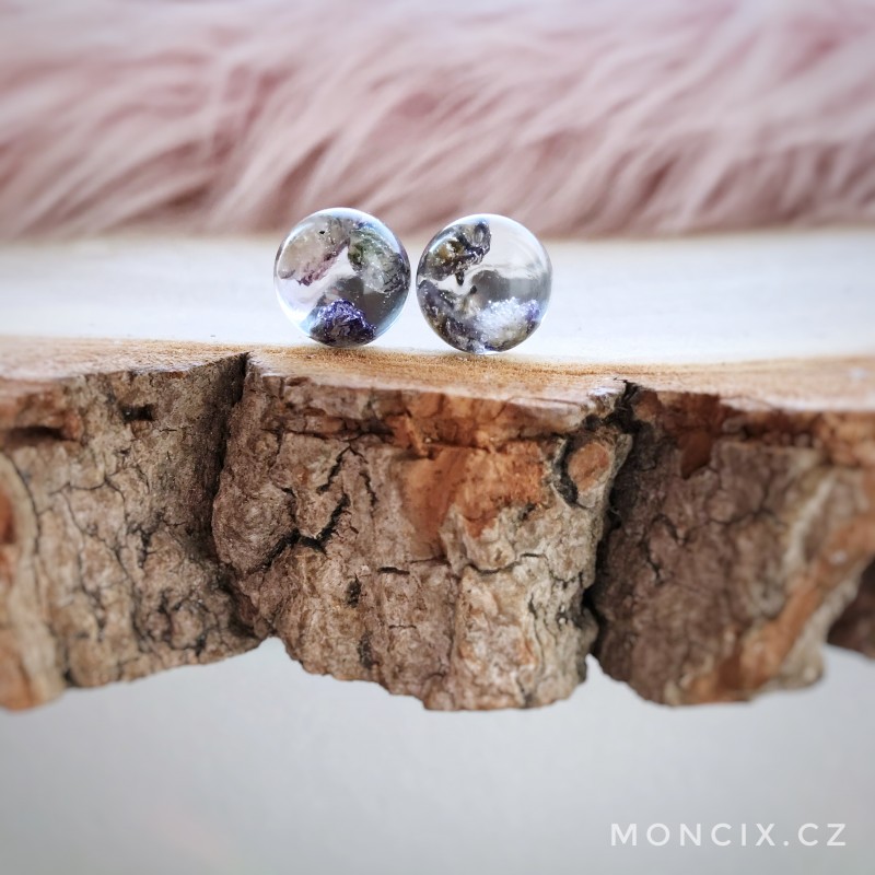 Elegantní drobné náušnice s fialovými živými květy.