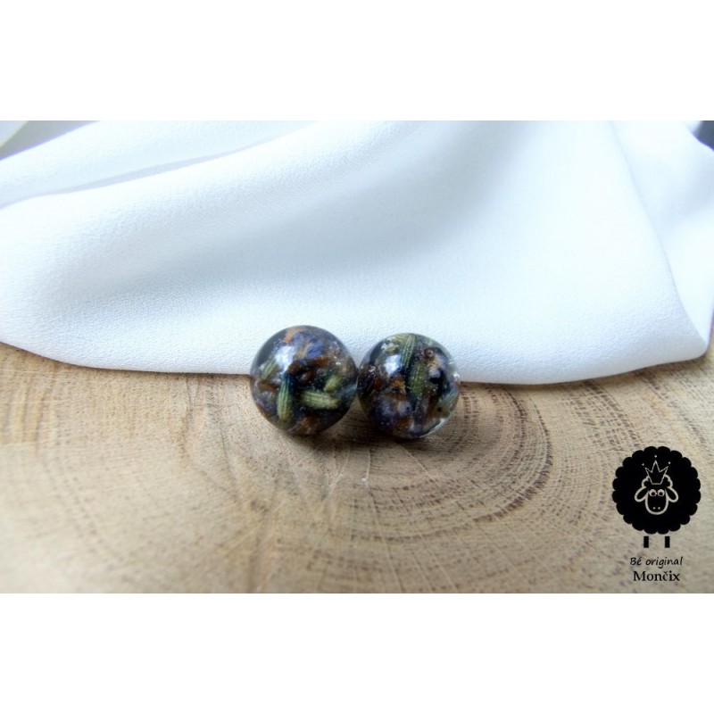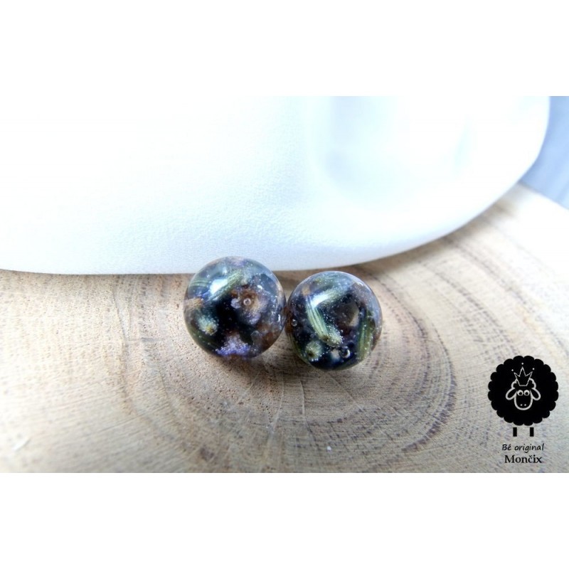 Luxusní kousek náušniček s kvítky levandule, kulička 12 mm.