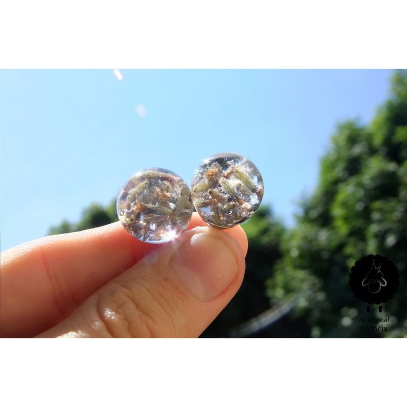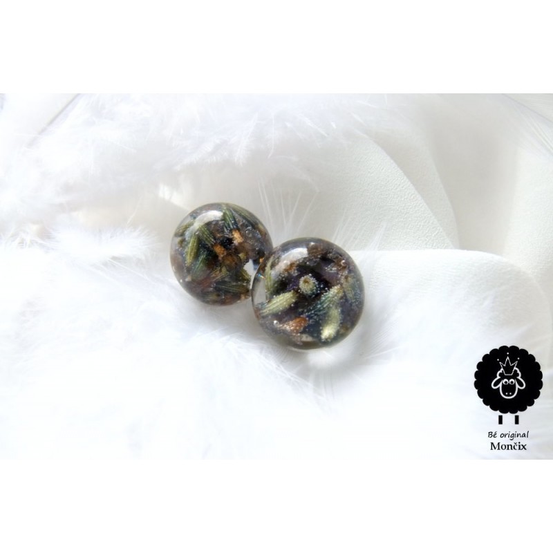 Luxusní kousek náušniček s kvítky levandule, kulička 16 mm.