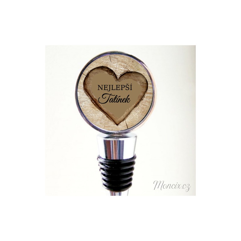 Dárková zátka na víno pro tatínka. Dřevěný motiv.