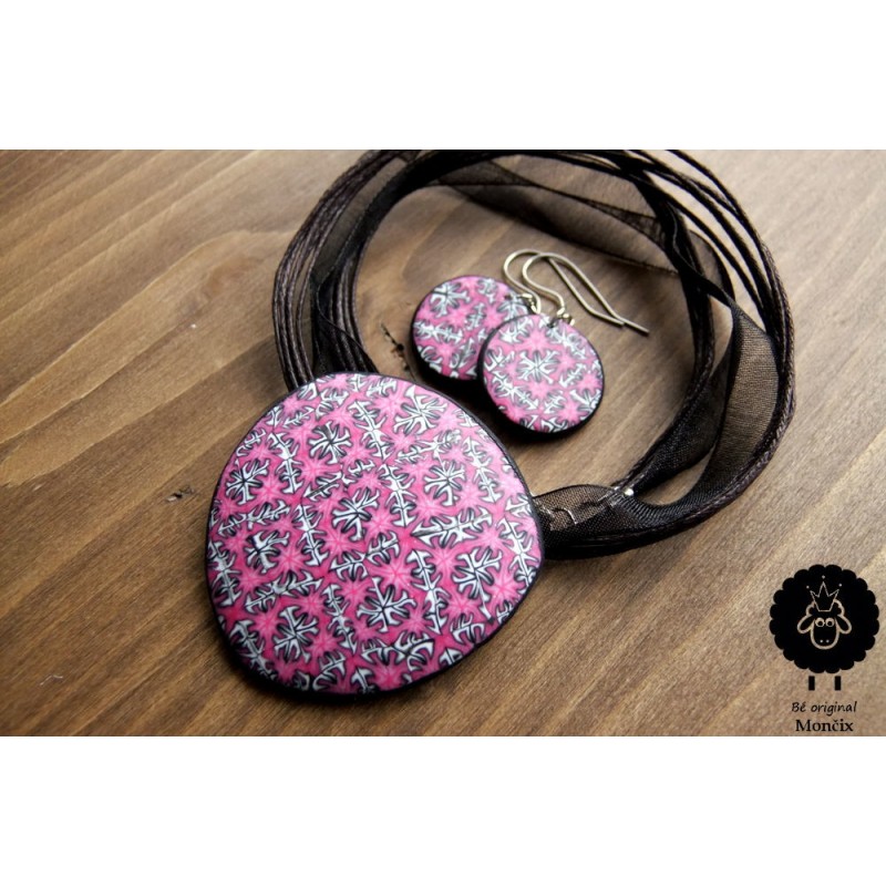 Ocelové náušnice + náhrdelník, ručně vyrobené z polymeru. Ocelové háčky i pro ta nejcitlivější ouška.