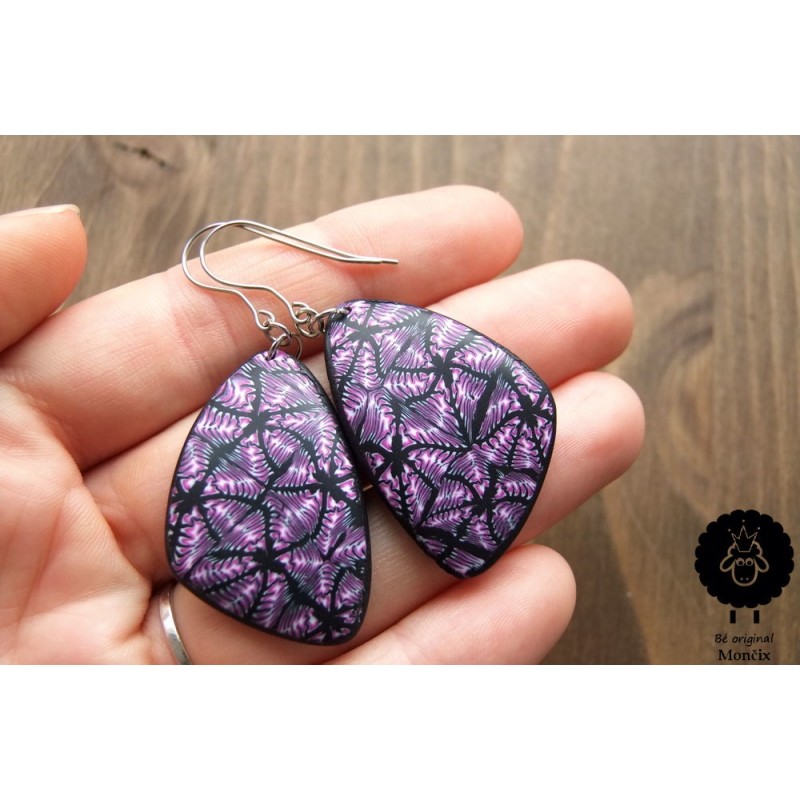 Ocelové, ručně vyrobené náušnice z polymeru. Ocelové háčky i pro ta nejcitlivější ouška.