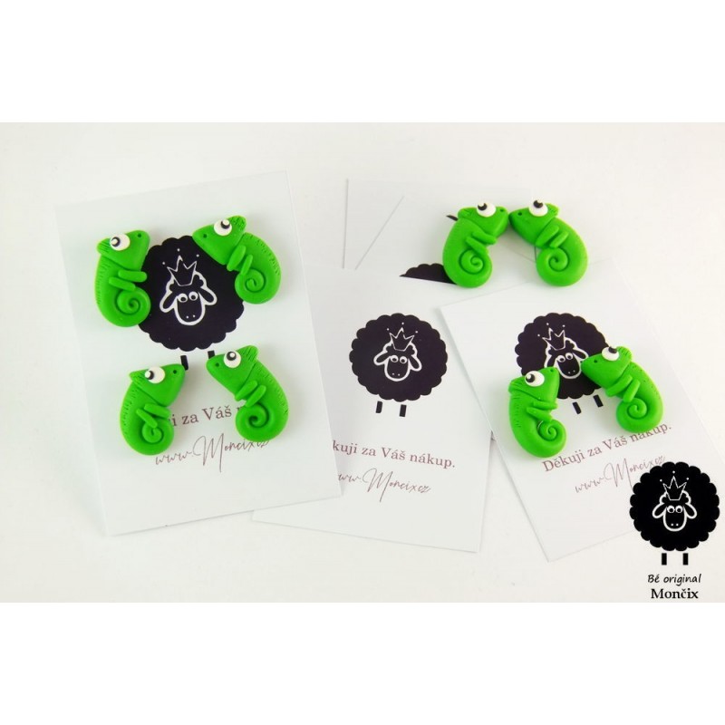 Velikost cca 2cm. Na přání možnost výroby chameleonů i v menším provedení.